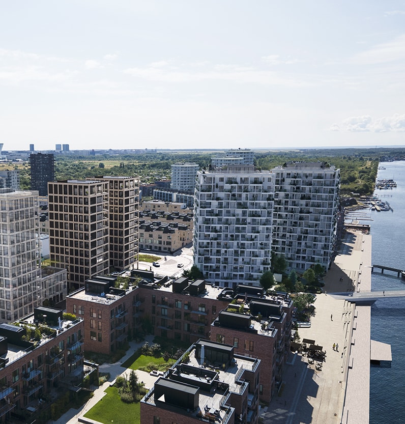 Henning Larsen Architects har tegnet hele stedet og de 2 tårne med en enestående udsigt til Fælleden, vandet og byen. Det er et sted, hvor du kan bo lige ved Københavns havn og Bryggens Centrale Plads. Et sted, hvor der er masser af ro, plads og lys. For selvom du er lige midt i alle Bryggens muligheder og tæt på Københavns liv, er byen overraskende stille netop her.